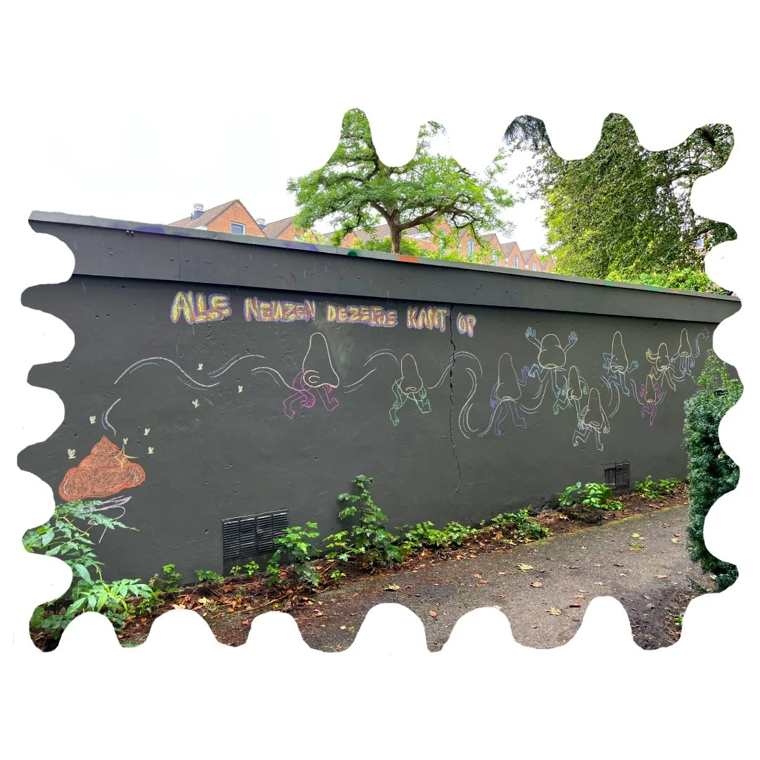 Searching for playfullness in ways of making led to drawing with chalk on public walls in Dordrecht. The temporariness of the chalk creates a free space in which new ways of drawing can be discovered, with a focus on playfulness and experimenting.